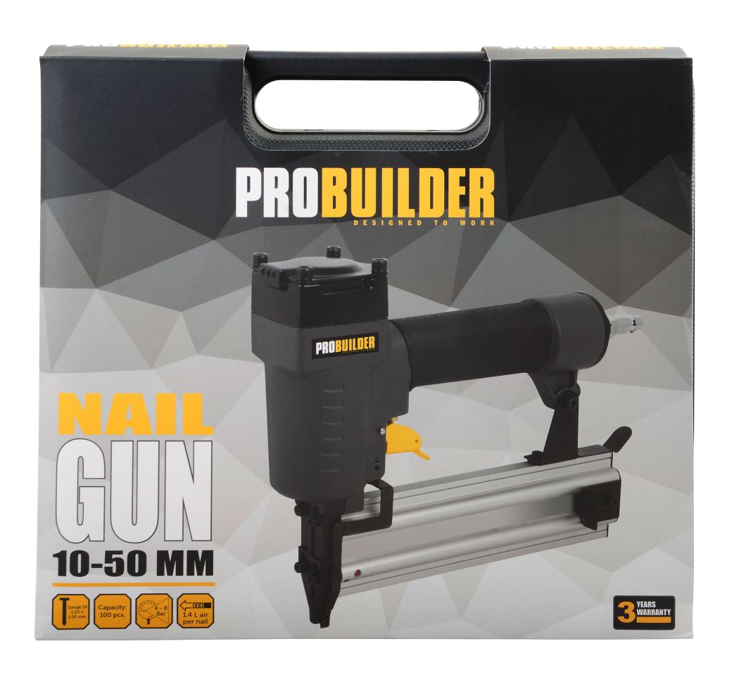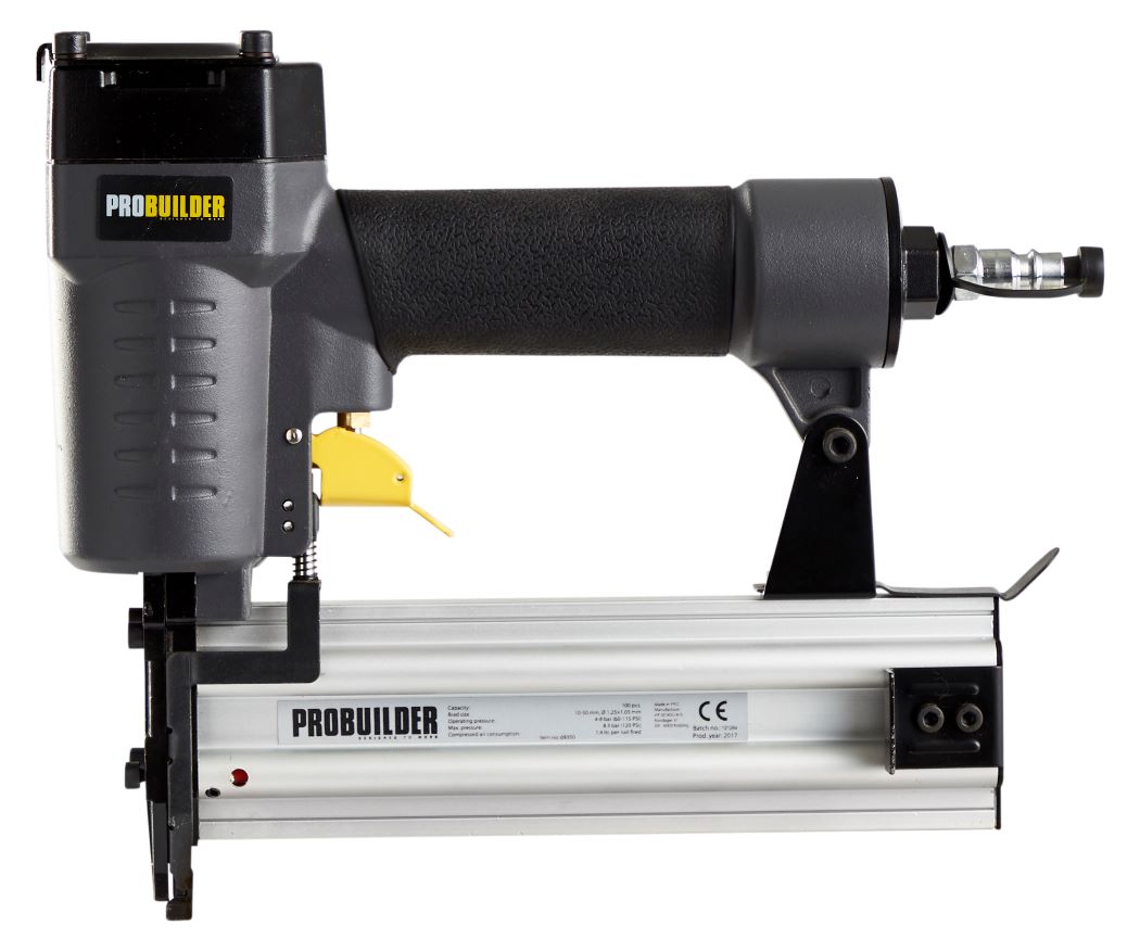 Trykluft dykkerpistol med masser af gode funktioner og skridsikkert soft grip håndtag, så man har godt styr på den. Magasinet kan holde op til 100 stk. i str: 10-50 mm, gauge 18 (1,25 x 1,025 mm). Luftforbrug 1,4 liter per søm og 168 l/min. Med 1/4“ lynkobling. Incl. 2 stk. stiftnøgler og 1 ekstra slagstift.