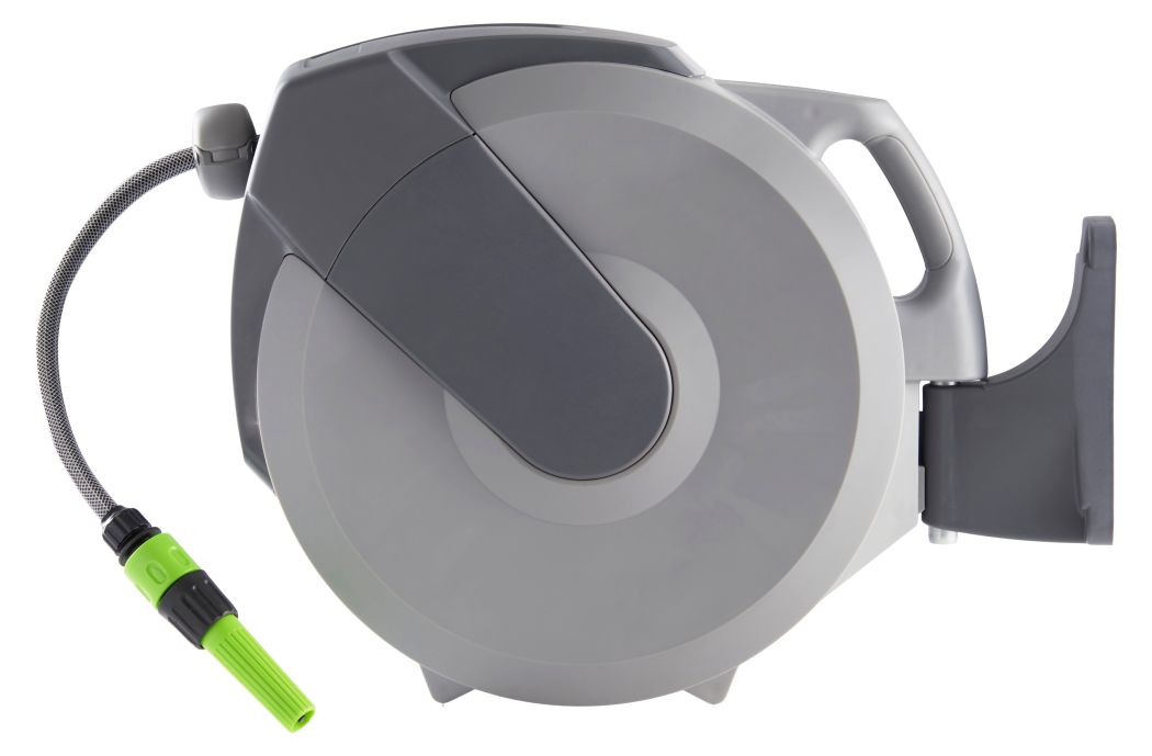 Slangeoprul til vægophæng med masser af funktionalitet. Den kommer med 30 m slange, 180 ° drejebeslag, koblinger, sprøjtepistol og 5 års garanti. Slangen kan ved et lille ryk rulles automatisk op og indstille hvor langt den skal rulles op med stopklodsen.