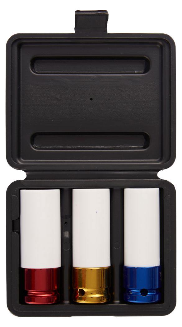 Sæt med 3 slagtoppe, 1/2" tomme slagtoppe sæt med 17, 19 og 21 mm slagtoppe.