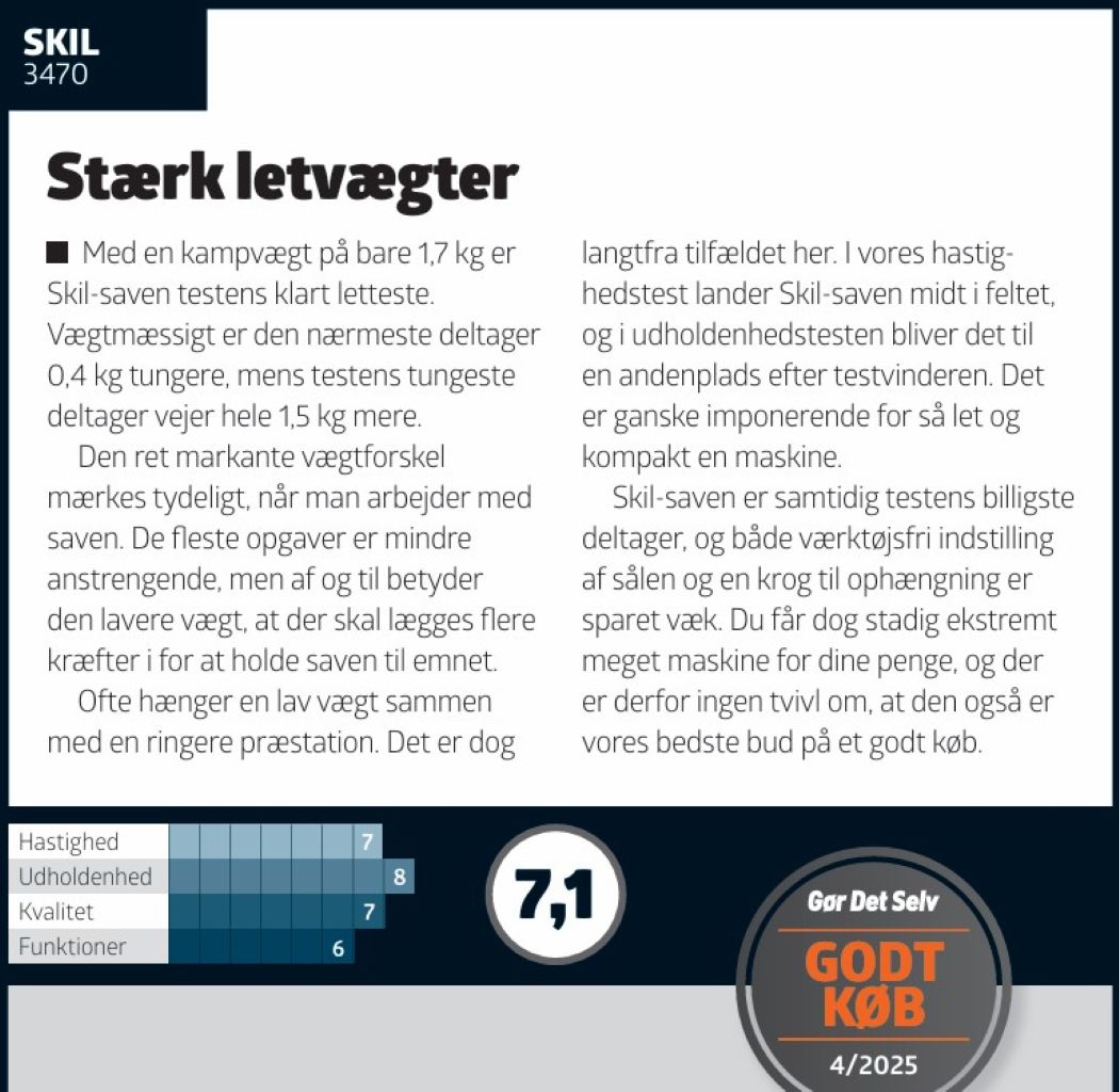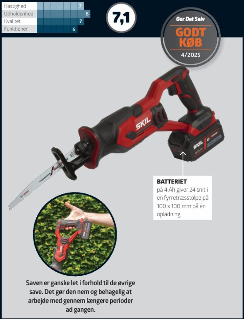 Denne bajonetsav er i 2025 kåret som "GODT KØB" i gør det selv bladets test af bajonetsave.