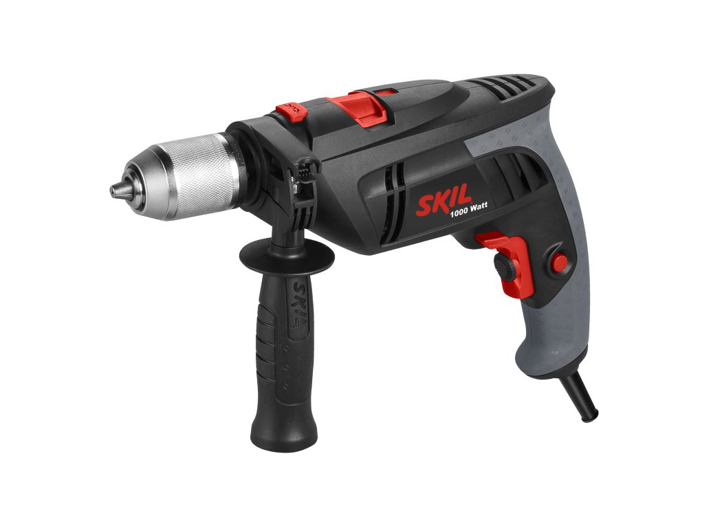 Kraftig 1000W 230V boremaskine med slagfunktion. Nøglefri metalpatron og variabel hastighed