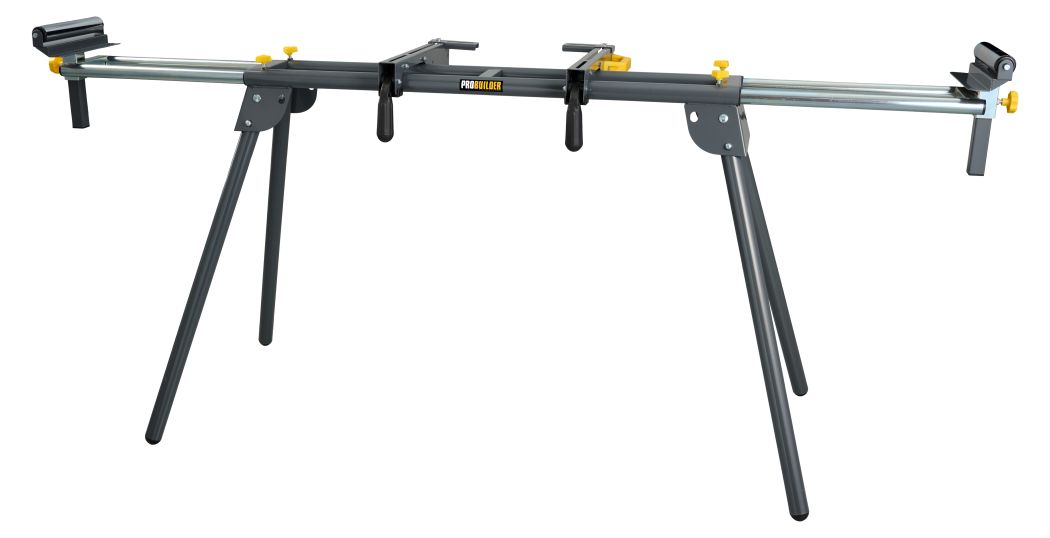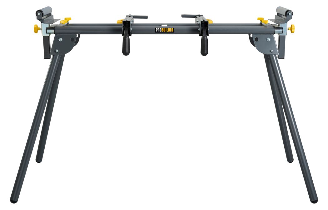 Bord til kapsav med kompakt opbevaring. Bordet har 4 kraftige ben, som kan slås op under bordet og gøre det virkelig kompakt. Man kan montere saven midt på bordet. Bordet kan justeres, så det kan tilpasses flere størrelser. Maks. Belastning er 150 kg. I siderne sidder en ruller, som gør det nemt at håndtere selv lange stykker træ, samtidig kan siderne skubbes ud. Leveres med 2 beslag til montering. Str. (118x200) x 63,2 x 90 cm. Str. højde, justerbar: 88 – 101,2 cm.