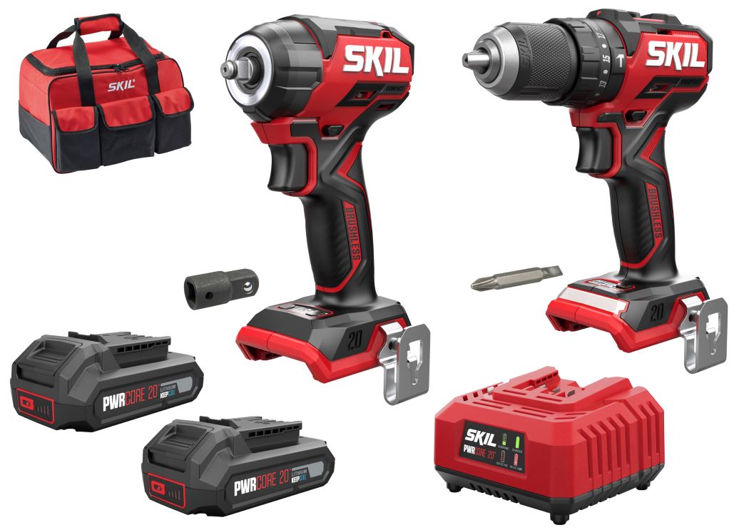 Vores »20V Max« 3075 akku-slagboremaskine og 3265 akku-slagskruetrækker er del af SKILs kompakte, kulfri sortiment. Disse værktøjer er ekstremt kompakte og tilbyder en kombination af høj ydelse, holdbarhed og et exceptionelt komfortniveau. Ligesom alle andre SKIL »20V Max«- akku-værktøjer drives disse modeller af det avancerede og brancheførende »PWRCORE 20™«-batteri og ladeteknologi. Vores SKIL 3075 er en kulfri akku-slagboremaskine med slagfunktion. Dette værktøj er velegnet til boring i træ, metal og endda også murværk og kan anvendes til de mest krævende skrueopgaver. Vores SKIL 3265 kulfri akku-slagnøgle tilbyder et højt moment til problemfri iskruning og udskruning af bolte og møtrikker. Takket være det kompakte letvægtsdesign foregår arbejde over hovedhøjde eller på svært tilgængelige steder helt problemfrit. Den digitale kulfri motor leverer mere effekt, mere effektivitet og 10x længere levetid i forhold til en sammenlignelig børstemotor. SKIL 3358 EA kombisæt med to værktøjer leveres i en transporttaske med to 2,0 Ah »KEEPCOOL™«-batterier, en hurtigoplader, en dobbelt skruebit, en 3/8” til 1/2” hex-adaptor og to bælteclips.
